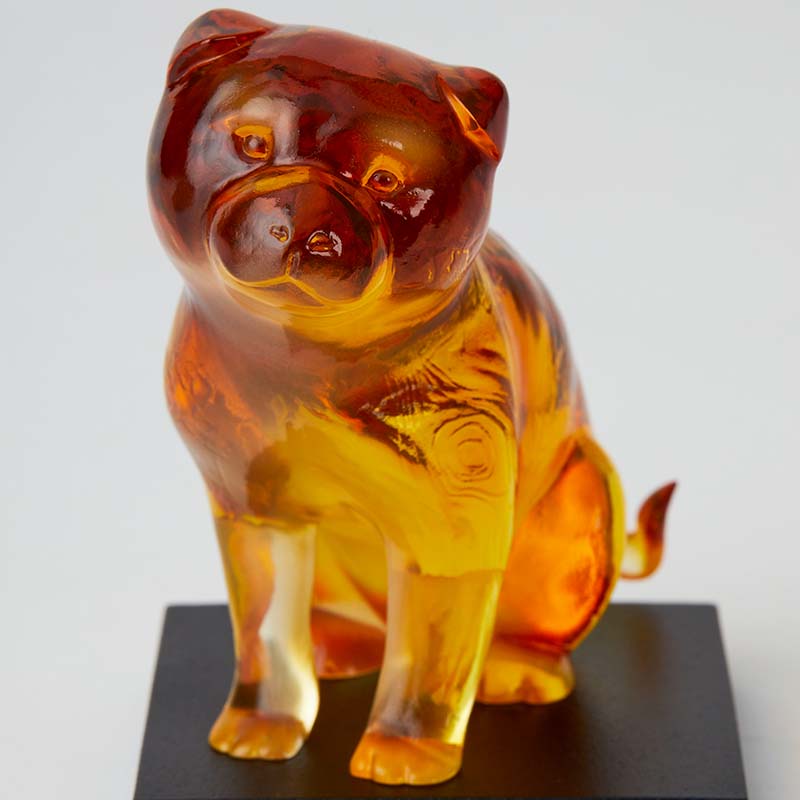 鎌倉時代の高僧、明恵上人が慈しんだ子犬を鎌倉期ならではの技術で彫像に仕立てた重文「木造 犬」を、イスムクオリティで輝くクリアカラーに仕上げました。