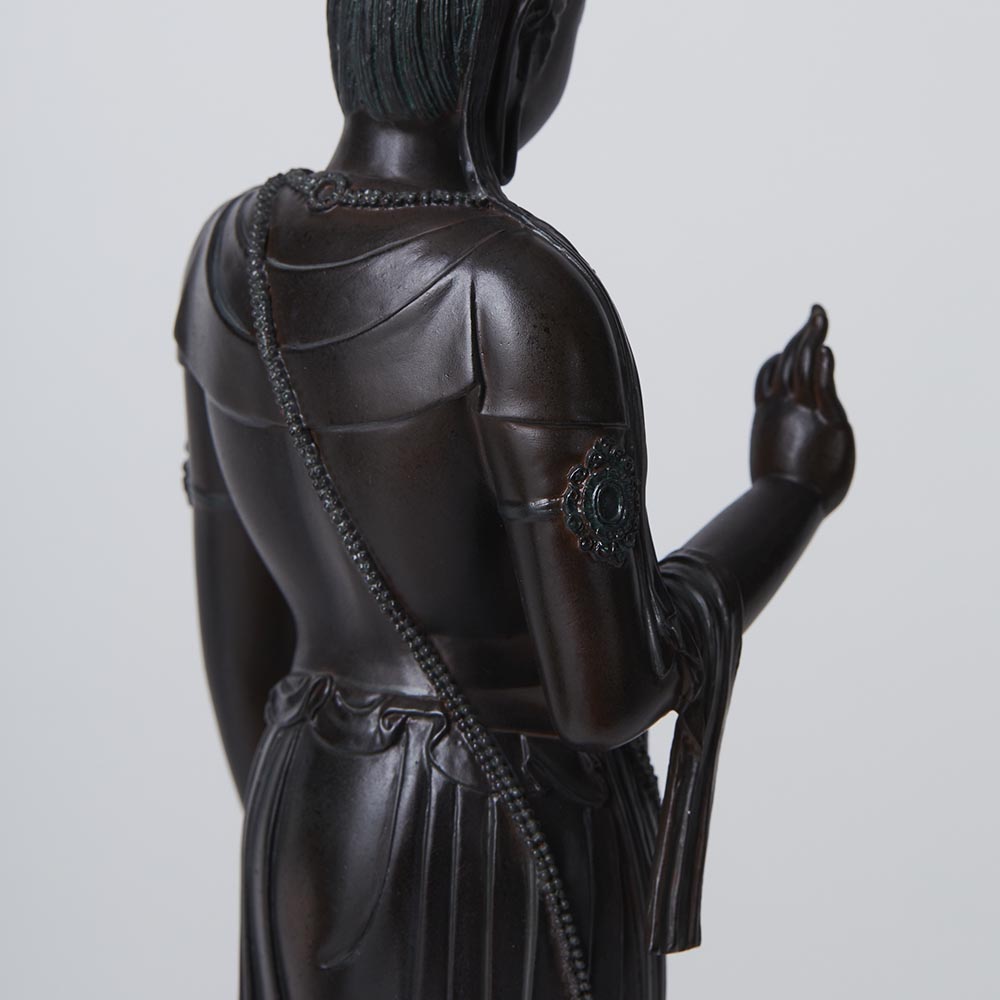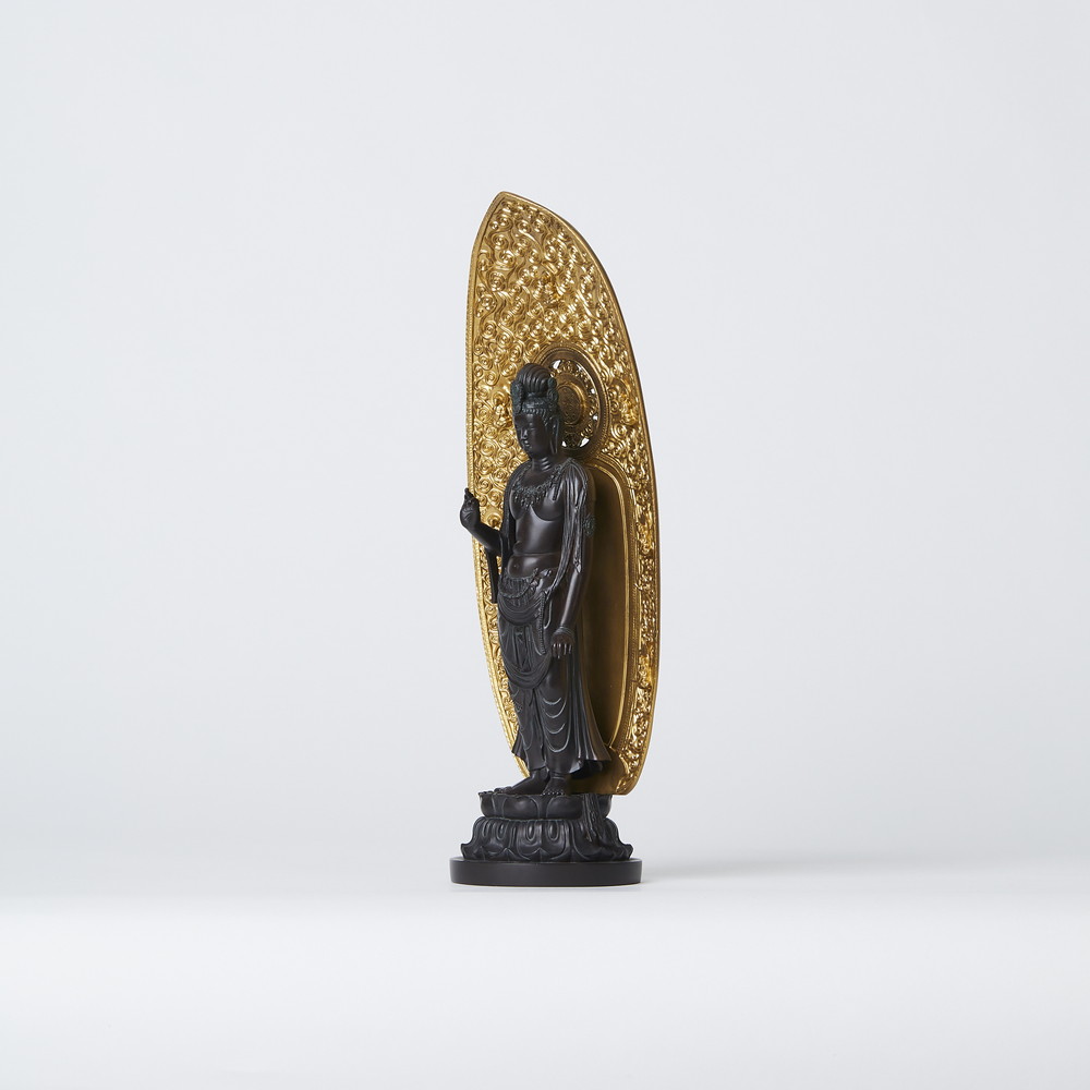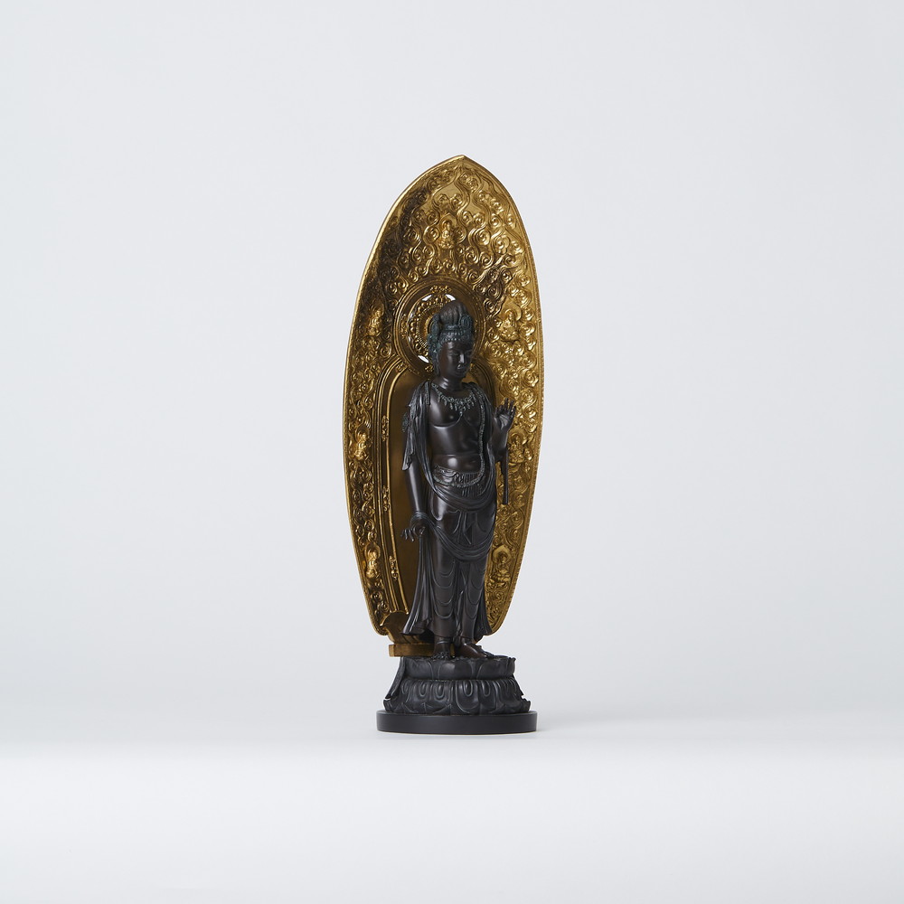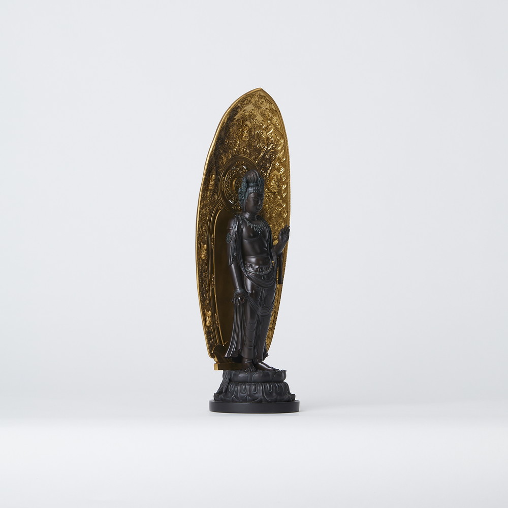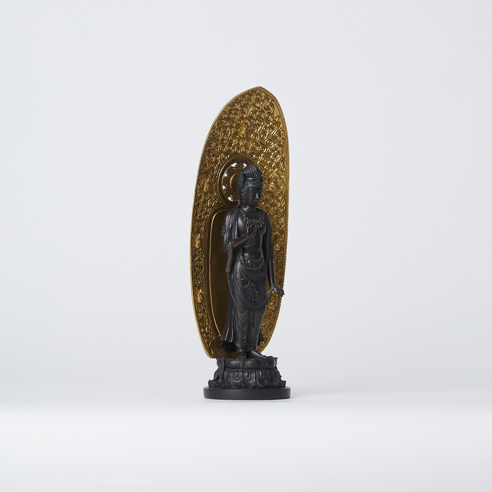 日本の仏教美術史における最高傑作のひとつとされる国宝 銅造薬師三尊像の気高き脇侍をモデルに、なめらかで深みのある肌の質感を丁寧につくり上げました。高貴で雅な調和を醸し出す二尊をお楽しみください。