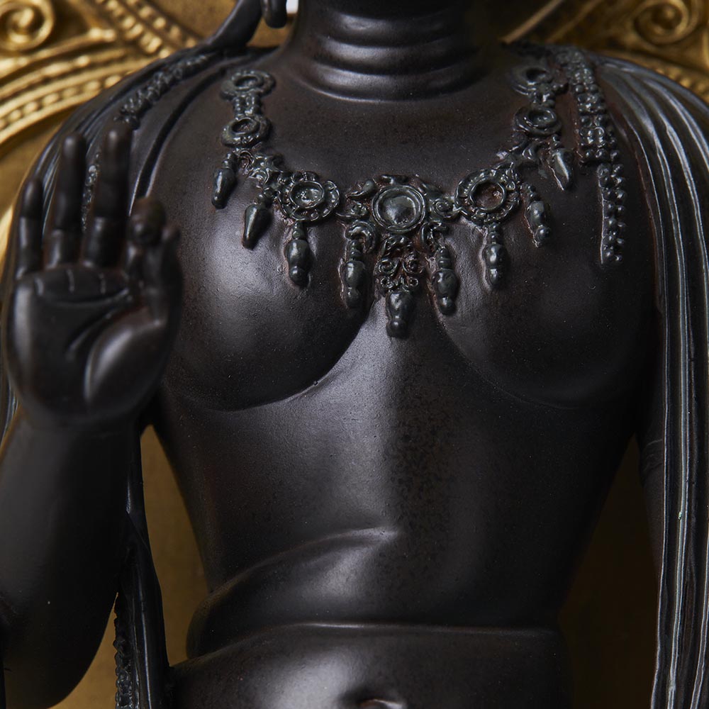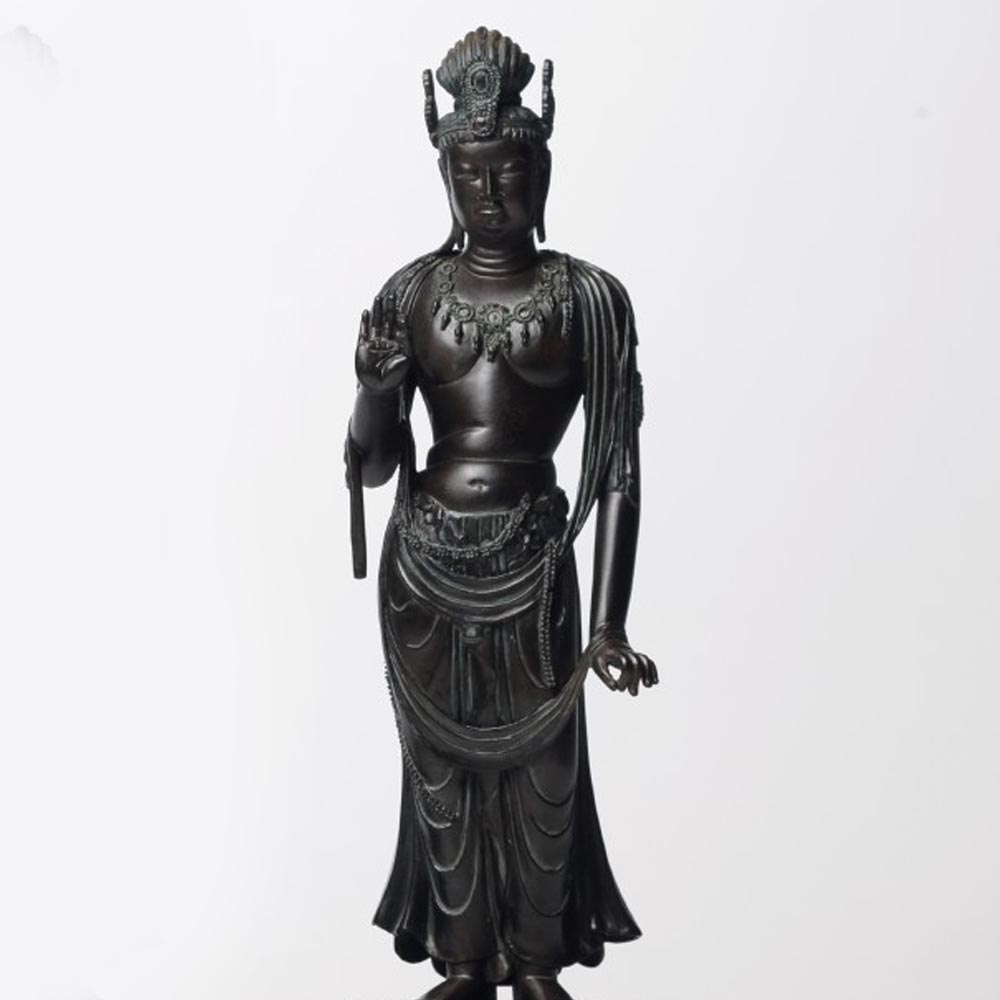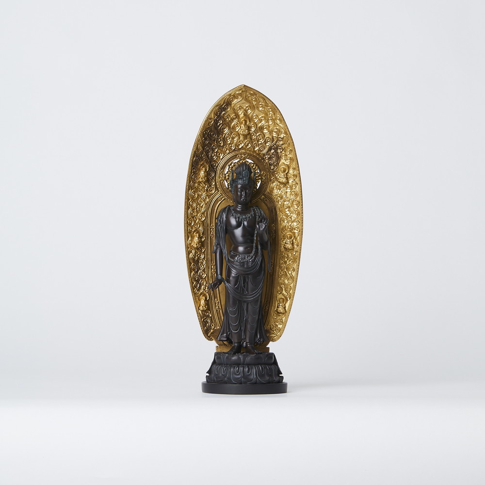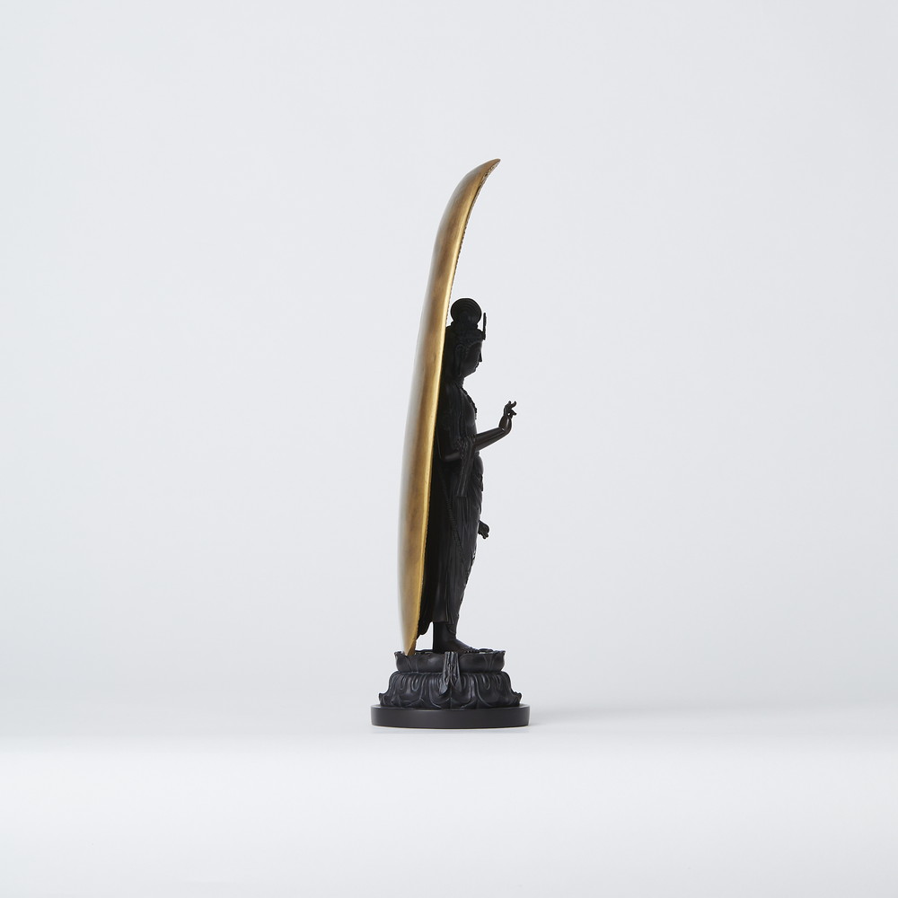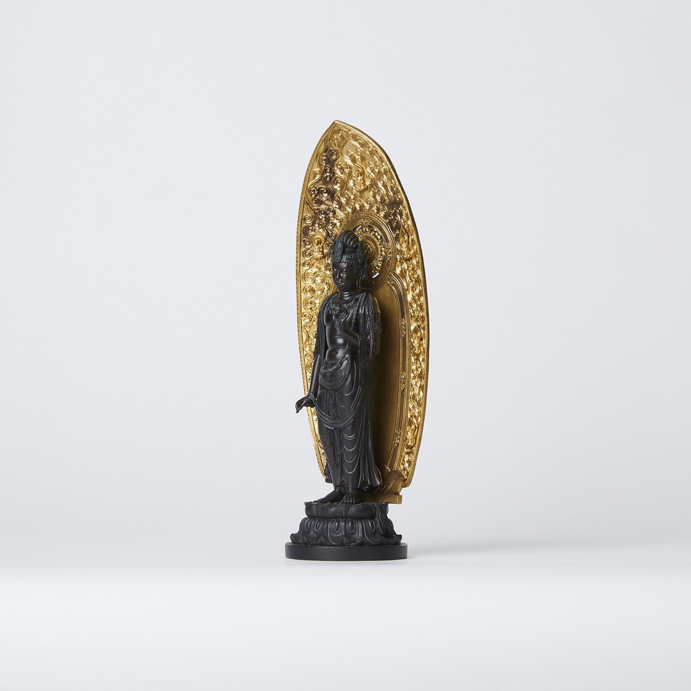 日本の仏教美術史における最高傑作のひとつとされる国宝 銅造薬師三尊像の気高き脇侍をモデルに、なめらかで深みのある肌の質感を丁寧につくり上げました。高貴で雅な調和を醸し出す二尊をお楽しみください。
