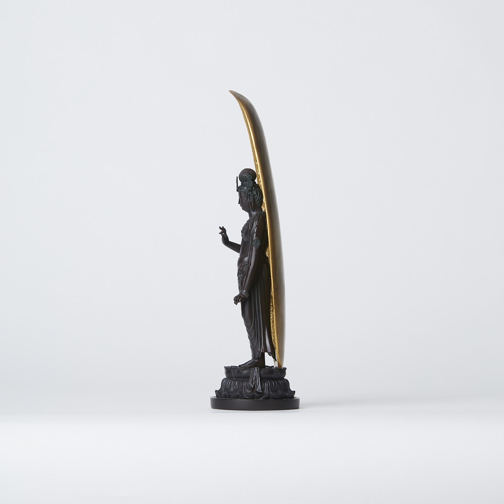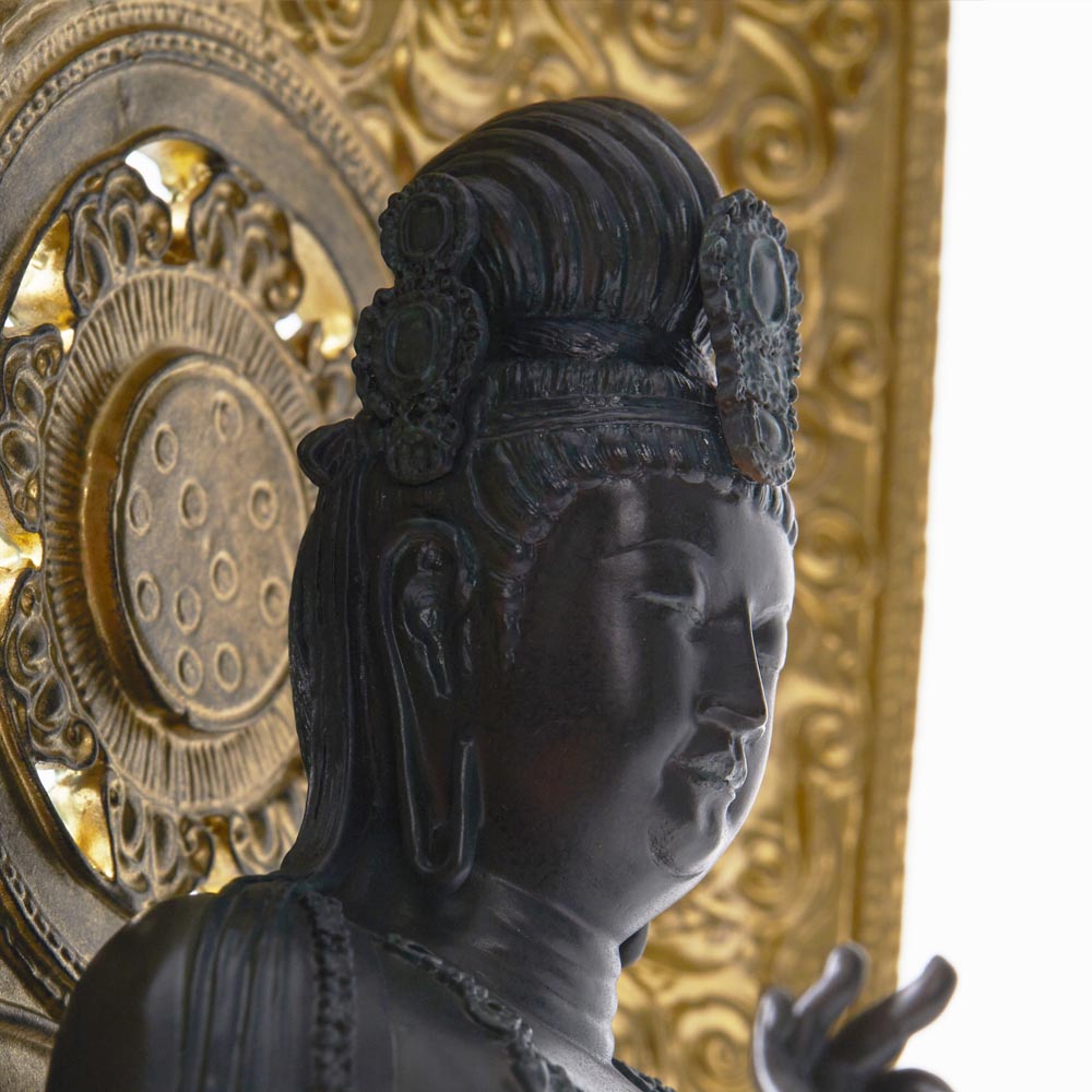 重ねた時が磨いた銅の光沢と、まばゆいばかりの金色の光背のコントラストが見事な日光菩薩・月光菩薩。2019年に販売した「イスム 日光菩薩 月光菩薩」を、輝く年の始まりに50セット限定で再販売いたします。
