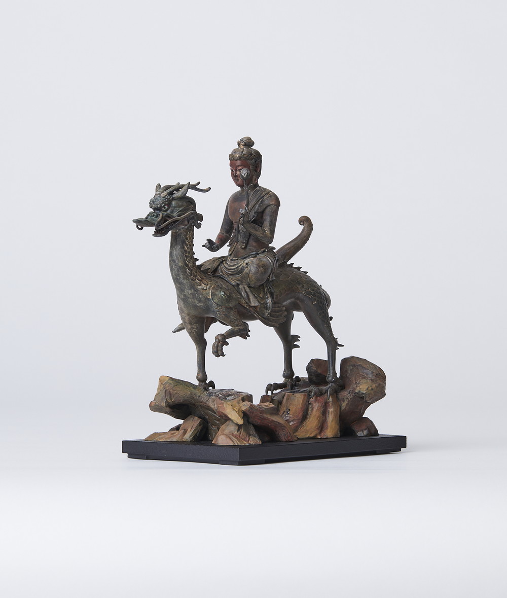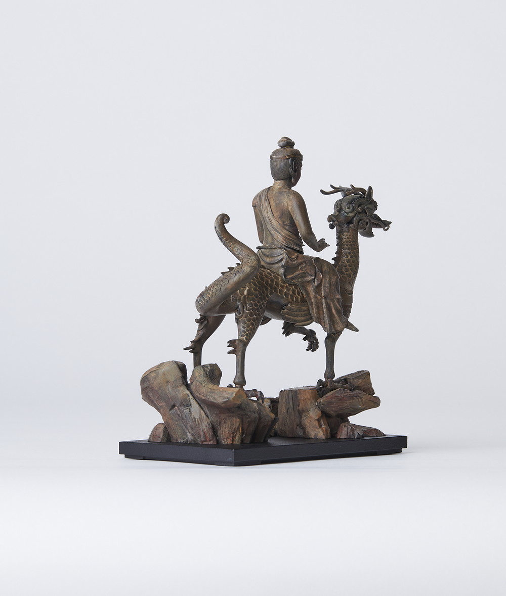 深い奥行を持つ竜王の背に、右足を踏み下げた姿勢で坐す -