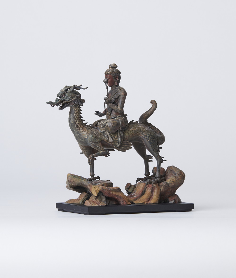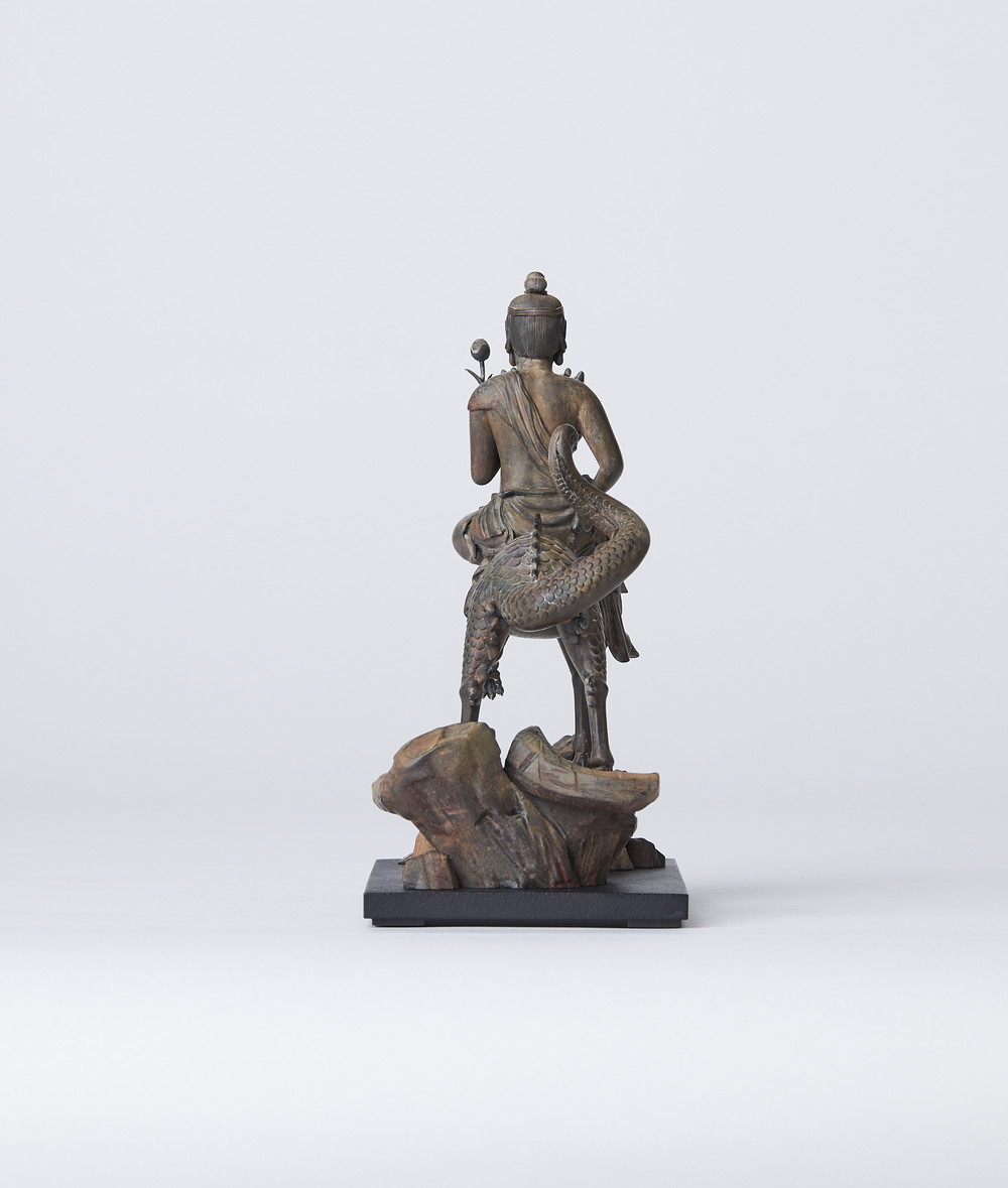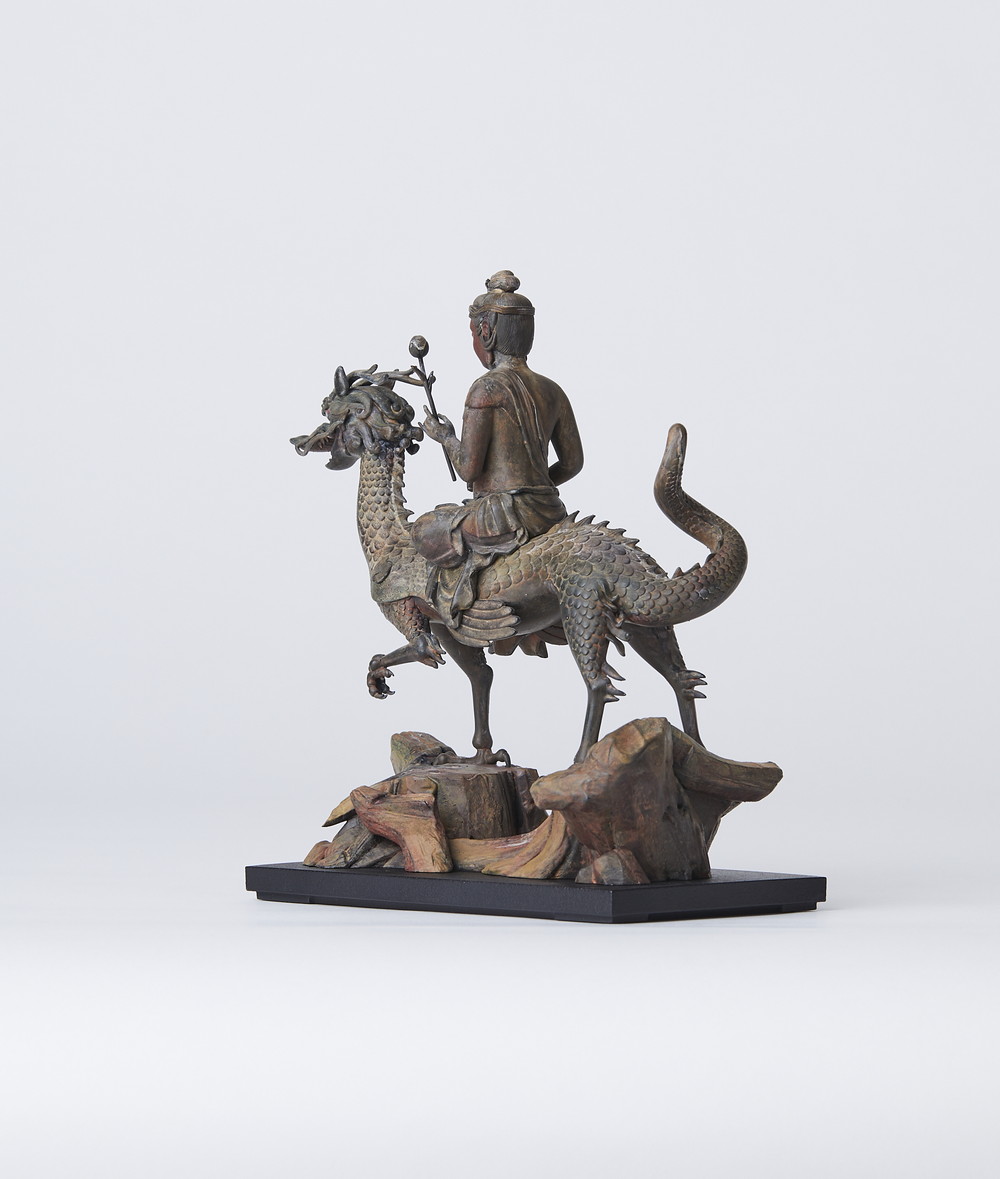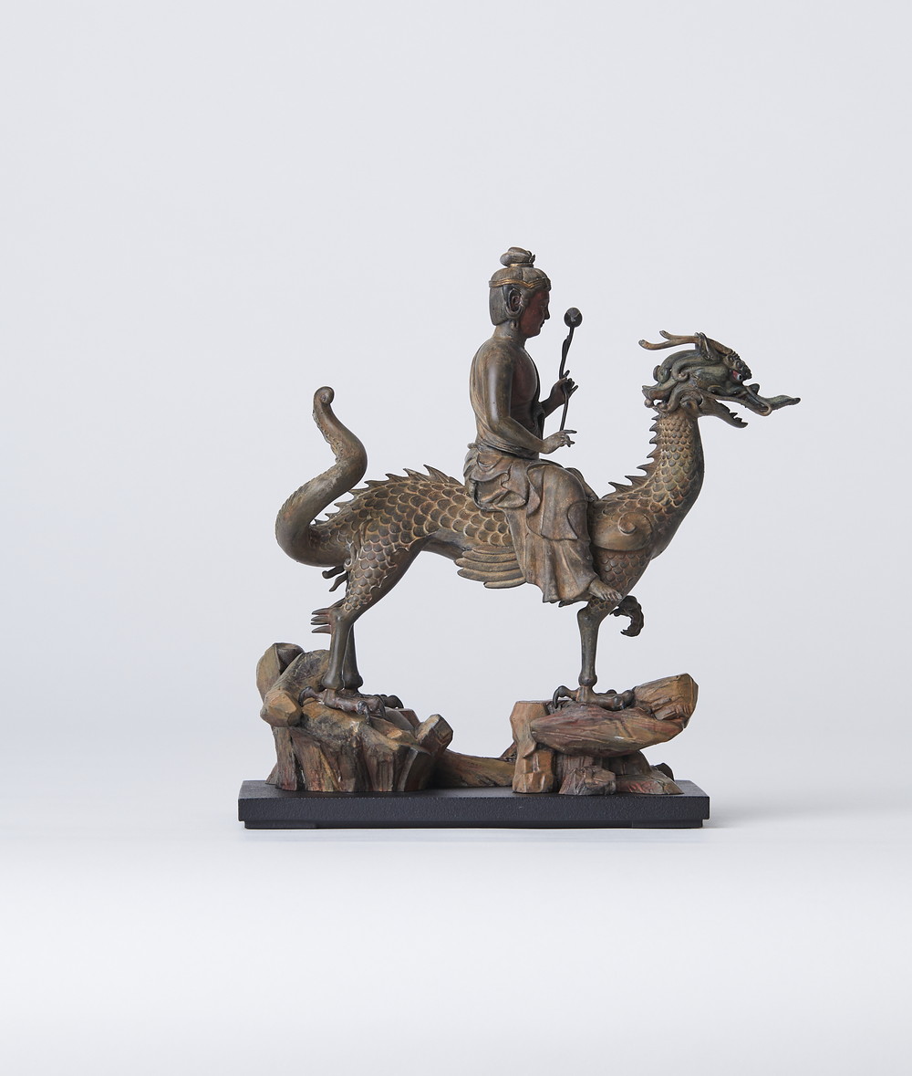 竜王の鋭い表情とは対照的に、柔和な菩薩の微笑みを浮かべる -